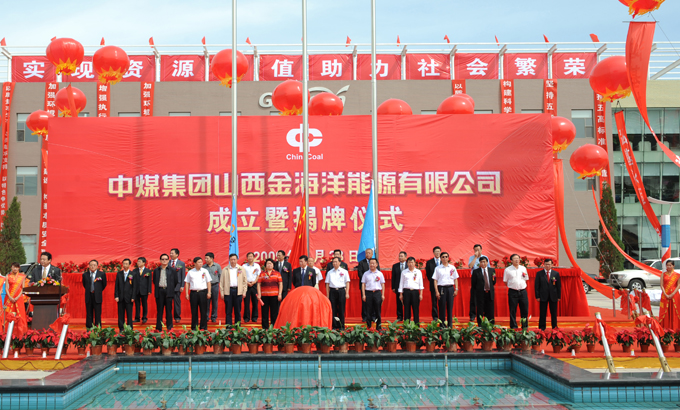 8月28日,中煤集團(tuán)山西金海洋能源有限公司成立暨揭牌儀式在金海洋工業(yè)園區(qū)隆重舉行,標(biāo)志著中煤集團(tuán)與山西省合作又結(jié)出新的碩果。山西省人民政府副秘書長王成,省煤炭廳副廳長牛建民,省煤監(jiān)局副局長薛勇軍,省發(fā)改委處長趙敏崎,省安監(jiān)局處長李高平,省煤監(jiān)局處長李守釗,朔州市市長馮改朵、市人大主任李彪、市政協(xié)主席高厚,山陰縣縣長侯元、縣人大主任李國勝、縣政協(xié)主席袁林生出席揭牌儀式;中煤集團(tuán)黨委書記、副董事長紀(jì)喜來主持儀式;中煤集團(tuán)總經(jīng)理王安、副總經(jīng)理洪宇、總會(huì)計(jì)師彭毅、總法律顧問周立濤,中煤能源股份公司副總裁高建軍,以及中煤集團(tuán)副總工程師、副總會(huì)計(jì)師,相關(guān)部門負(fù)責(zé)人出席揭牌儀式。