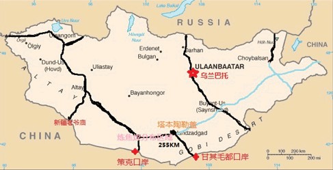 圖2:蒙古國主要鐵路運輸線路(黑色:運行中鐵路藍色:規(guī)劃中線路)