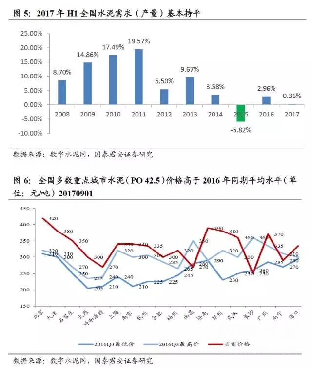 我們認(rèn)為華東、華南需求條件最好(地產(chǎn)、基建需求較強(qiáng)),整體高產(chǎn)能利用率,盈利能力拉開(并有望繼續(xù)拉大)和其他區(qū)域的差距;而華北、西北需求潛力較大,且環(huán)保政策進(jìn)一步收嚴(yán),部分企業(yè)有望享受價(jià)格紅利(近期華北價(jià)格在歷史新高基礎(chǔ)上再次提漲50元/噸,后期有望繼續(xù)提漲)。