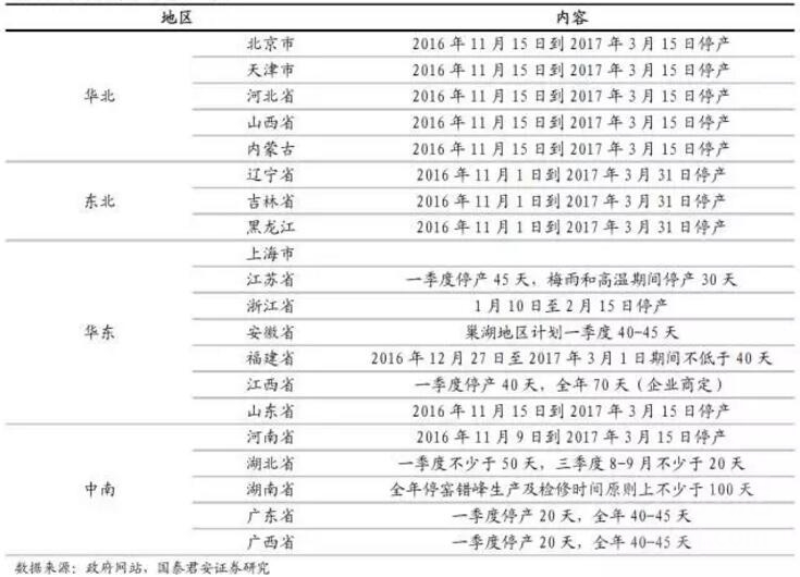 2017年上半年看,環(huán)保、錯(cuò)峰生產(chǎn),全國各主要省份均出臺(tái)的相應(yīng)的錯(cuò)峰停產(chǎn)停窯限產(chǎn)的計(jì)劃, 2017年停窯計(jì)劃時(shí)間明顯超過行業(yè)慣例(平均每年停窯55天左右)。而考慮到今年是《大氣污染防治行動(dòng)計(jì)劃》考核年,今年錯(cuò)峰停產(chǎn)可能高于16年標(biāo)準(zhǔn)。