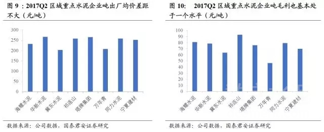 17年上半年,在需求維持平穩(wěn)狀態(tài)下水泥價(jià)格出現(xiàn)同比大幅抬升,帶動(dòng)整體水泥板塊盈利明顯回升。但是從半年報(bào)業(yè)績來看,盈利確出現(xiàn)分化,在非需求擴(kuò)張周期中的價(jià)格抬升(并未實(shí)際去產(chǎn)能),區(qū)域及企業(yè)之間其實(shí)處于明顯分化且不對等的博弈狀態(tài),競爭優(yōu)勢領(lǐng)先企業(yè)的領(lǐng)先將繼續(xù)擴(kuò)大。
