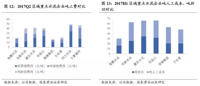 水泥板塊區(qū)域及區(qū)域間企業(yè)的盈利能力分化,方差達(dá)到歷史最大。17年上半年,水泥價(jià)格在需求維持平穩(wěn)狀態(tài)下出現(xiàn)大幅抬升,帶動(dòng)整體水泥板塊盈利明顯回升。但是從半年報(bào)業(yè)績來看,盈利確出現(xiàn)分化,在非需求擴(kuò)張周期中的漲價(jià),區(qū)域之間和企業(yè)之間其實(shí)處于不對等的博弈狀態(tài),在錯(cuò)峰停產(chǎn)及停產(chǎn)停窯的博弈中,由于水泥的重資產(chǎn)特征,產(chǎn)能利用率高低將直接導(dǎo)致噸折舊、財(cái)務(wù)成本、人工成本等上升,侵蝕利潤,導(dǎo)致水泥企業(yè)盈利能力出現(xiàn)分化。我們認(rèn)為華東、華南板塊產(chǎn)能利用率明顯好于華北、東北及西北,且海螺水泥等龍頭的競爭優(yōu)勢顯著擴(kuò)大。