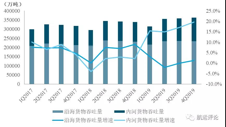內(nèi)需提振中國(guó)內(nèi)河港口貨物吞吐量大幅增長(zhǎng)2019年,中國(guó)面臨的經(jīng)貿(mào)環(huán)境不容樂觀,GDP實(shí)際增速預(yù)計(jì)為6.1%,為1992年有統(tǒng)計(jì)數(shù)據(jù)以來的年度最低值;外貿(mào)進(jìn)出口總值31.54萬億元人民幣,同比增長(zhǎng)3.4%,與去年9.7%的增速相比放緩明顯。但中國(guó)國(guó)內(nèi)需求穩(wěn)步擴(kuò)大,前11個(gè)月中國(guó)社會(huì)消費(fèi)品零售總額同比增長(zhǎng)8%,中國(guó)消費(fèi)正在高基數(shù)的基礎(chǔ)上加快增長(zhǎng)。在此背景下,中國(guó)港口貨物吞吐量總體保持較快增長(zhǎng),內(nèi)需提振內(nèi)河港口貨物吞吐量增長(zhǎng)強(qiáng)勁,成為推動(dòng)中國(guó)港口貨物吞吐量增長(zhǎng)的主要?jiǎng)恿Α?/p>