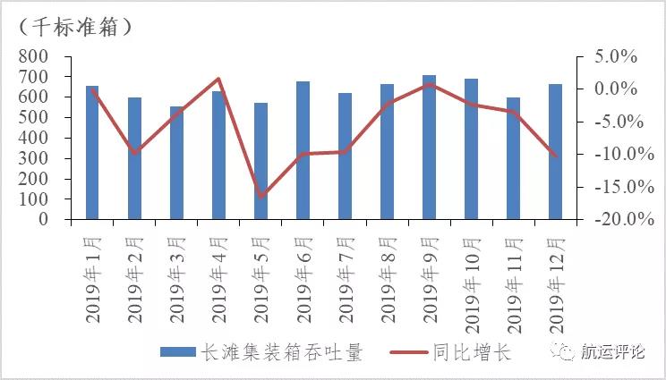 圖9 2019年長(zhǎng)灘港集裝箱吞吐量及增速