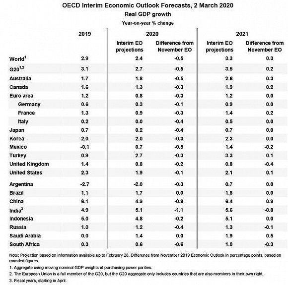 OECD預計,在最好的情況下,中國經(jīng)濟今年將增長4.9%,相比去年11月時的預期下調(diào)了0.8個百分點;2021年增速將反彈至6.4%,此前預期為5.5%。