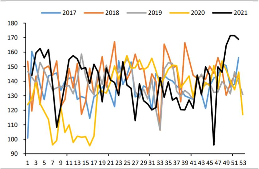 從調(diào)度數(shù)據(jù)來看,本周秦港鐵路日均調(diào)入量為44.43萬噸,較上周減少12.77萬噸;日均吞吐量為49.43萬噸,較上周減少5.06萬噸;日均錨地船舶減少10.43艘,日均預(yù)到船舶之間2.43艘。
