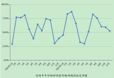 據(jù)對(duì)全國(guó)重要鋼材批發(fā)市場(chǎng)調(diào)查,12月份鋼材批發(fā)市場(chǎng)銷售價(jià)格預(yù)期指數(shù)、購(gòu)進(jìn)價(jià)格預(yù)期指數(shù)分別為52.4%、56.7%,比上月分別下降6.7和3.2個(gè)百分點(diǎn),均保持在50%分界線之上,反映出市場(chǎng)對(duì)12月份鋼材價(jià)格繼續(xù)保持審慎樂觀,看漲預(yù)期略有減弱。