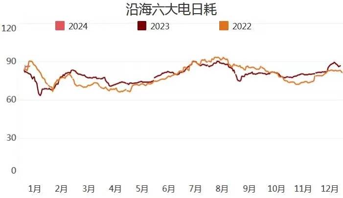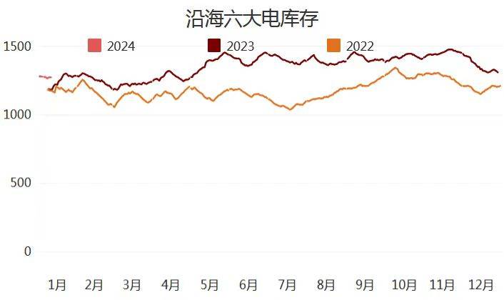 截止1月12日,沿海六大電廠日耗85.9萬噸,周環(huán)比下降1.1萬噸,總庫存合計1276.4萬噸,周環(huán)比上升8.4萬噸?捎锰鞌(shù)14.8周環(huán)比上升0.2天。