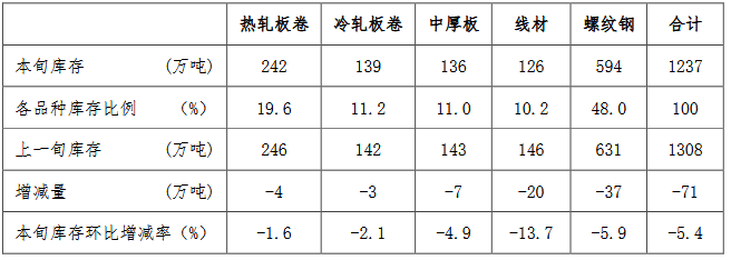 4月中旬,5大品種鋼材社會(huì)庫存環(huán)比全部下降,其中螺紋鋼和線材分別為減量和降幅最大品種,具體見下表。