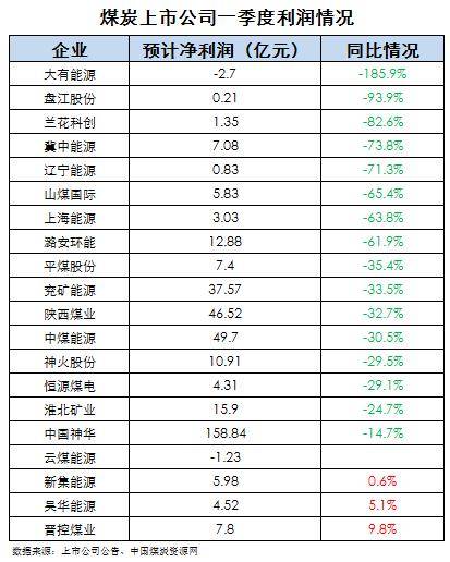 各公司發(fā)布的季報顯示,一季度中煤能源凈利潤下跌30.5%,陜西煤業(yè)下降了約32.7%,大有能源、盤江股份、蘭花科創(chuàng)、冀中能源降幅都在70%以上,大有能源更是錄得了2.7億元的虧損。