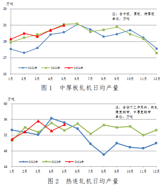中厚板軋機(jī)5月份生產(chǎn)特厚板、中厚板650萬(wàn)噸,同比減少4萬(wàn)噸,下降0.6%;累計(jì)生產(chǎn)2979萬(wàn)噸,同比減少9萬(wàn)噸,下降0.3%。