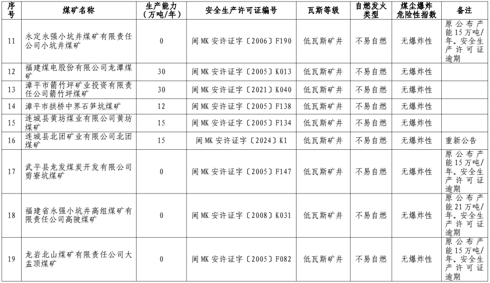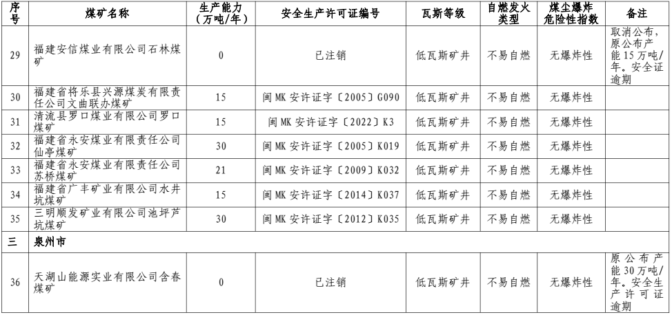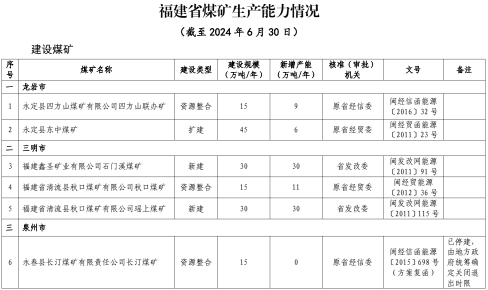 福建省發(fā)展和改革委員會(huì)關(guān)于公布截至2024年6月底全省建設(shè)生產(chǎn)煤礦產(chǎn)能和瓦斯等級的通知