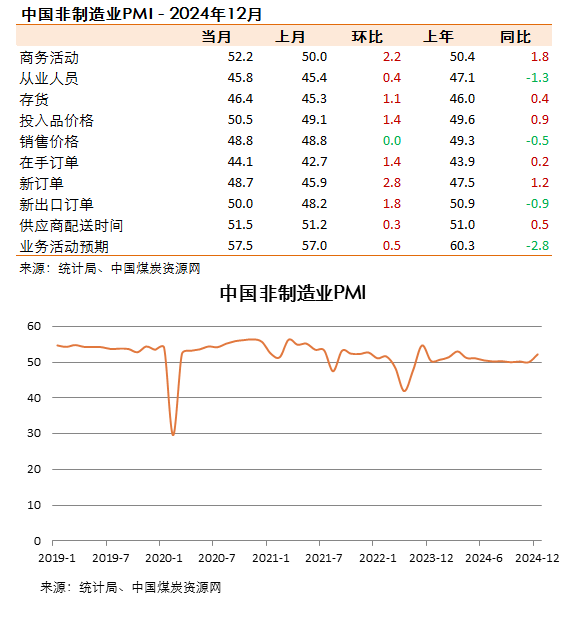 12月份,制造業(yè)采購經理指數為50.1%,比上月下降0.2個百分點;非制造業(yè)商務活動指數和綜合PMI產出指數均為52.2%,分別比上月上升2.2和1.4個百分點,三大指數均位于擴張區(qū)間,企業(yè)生產經營活動加快,我國經濟景氣水平延續(xù)回升向好態(tài)勢。