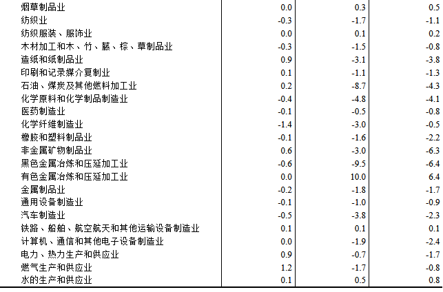 工業(yè)生產(chǎn)者購進(jìn)價格中,黑色金屬材料類價格下降7.9%,燃料動力類價格下降5.9%,化工原料類價格下降4.7%,農(nóng)副產(chǎn)品類價格下降3.9%,建筑材料及非金屬類價格下降2.3%,紡織原料類價格下降1.6%;有色金屬材料及電線類價格上漲11.4%。