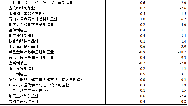 工業(yè)生產者購進價格中,黑色金屬材料類價格下降8.9%,燃料動力類價格下降5.2%,化工原料類價格下降4.1%,農副產品類價格下降3.3%,建筑材料及非金屬類價格下降2.3%,紡織原料類價格下降1.4%;有色金屬材料及電線類價格上漲10.9%。